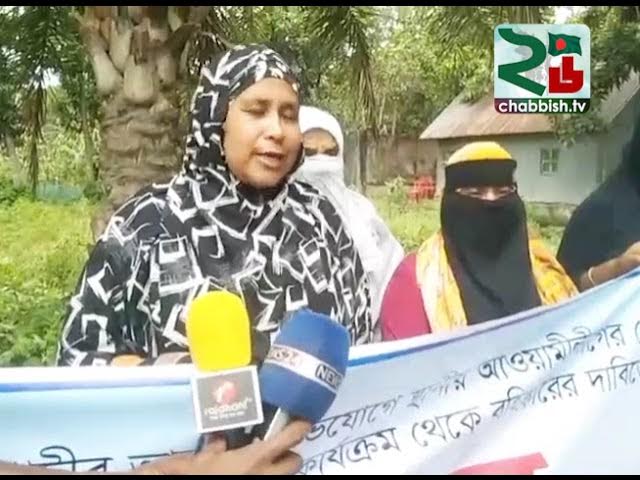 কুমিল্লার নারায়ণপুরে অবৈধভাবে ঈদগাহের সীমানা প্রাচীর ভাঙার প্রতিবাদে বহিষ্কারের দাবীতে মানববন্ধন।