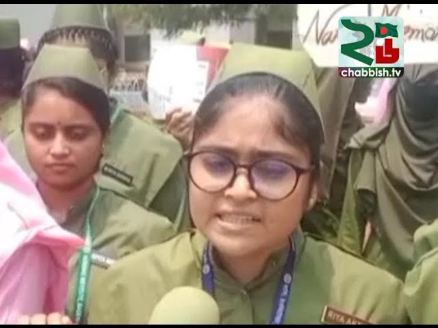 বাগেরহাটে স্নাতক সমমান স্বীকৃতির দাবিতে নার্সিং শিক্ষার্থীদের বিক্ষোভ ও মানববন্ধন অনুষ্ঠিত।