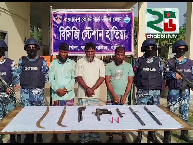 হাতিয়ায় অস্ত্র-গুলিসহ আটক তিন দুর্ধর্ষ ডাকাত।